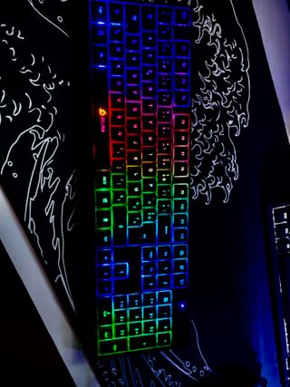 KLIM Chroma AZERTY USB Gaming Keyboard com retroiluminação RGB fixa e teclas silenciosas de membrana, perfeito para jogos, digitação e uso diário. Compatível com PC, laptops e dispositivos USB. A iluminação pode ser ligada ou desligada conforme preferência e oferece boa resposta (~2 ms). A barra de espaço couine um pouco, mas o teclado funciona sem problemas. Ficha técnica : • Layout AZERTY • Conectividade: USB‑A • Tipo: Membrana silenciosa • Retroiluminação RGB • Tempo de resposta: ≈2 ms • Compatibilidade: PC, laptops, consoles • Dimensões: 44 × 14,4 × 2,9 cm • Peso: 460 g