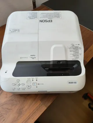Com mando original e cabos, poucas horas de lâmpada POUCO USADO, EXCELENTE ESTADO Disfrute de imágenes prácticamente sin sombras con el proyector Epson PowerLite 675W 3200-Lumen WXGA Ultra-Short Throw 3LCD. Cuenta con una relación de proyección ultracorta, lo que permite montarlo a solo 11 pulgadas de la pantalla o pizarra y proyectar una imagen de hasta 100 pulgadas, lo que reduce el riesgo de posibles sombras. Sus 3200 lúmenes de brillo, combinados con su relación de contraste de 14 000:1, le ayudarán a superar la luz ambiental en muchas situaciones y a conservar los detalles en las zonas oscuras de la imagen sin comprometer el