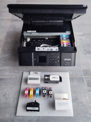 Impressora Epson XP 6000 imprimir bem, mas não puxa o papel bem. O tabuleiro têm papel e temos que insistir para puxar o papel para imprimir. É único defeito da impressora. Juntamente com dois kits de cartuchos de tinta 202 XL, recarregáveis com chip que dá para fazer reset com o leitor de chip dos cartuchos. 2 cartuchos de manutenção com chip e o respetivo leitor de chip para fazer reset. - Impressora multifunções. - Inclui 2 kits de cartuchos de tinta 202 XL (cores variadas). - Inclui 2 cartuchos manutenção - Leitor de chip "reset" para cartuchos 202 XL - Leitor de chip "reset" para cartuchos manutenção
