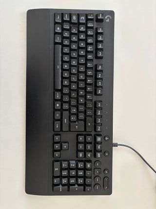 Teclado gaming Logitech G213, em ótimo estado e 100% funcional. Oferece uma escrita confortável, resposta rápida e excelente controlo tanto para jogos como para uso diário. ✨ RGB Lightsync personalizável 💧 Resistente a salpicos 🎮 Layout completo, ideal para gaming prolongado 🔌 Ligação USB – ligar e usar *padrao reino unido* Construção sólida e qualidade reconhecida da Logitech. Perfeito para quem quer um teclado gamer fiável sem gastar muito.