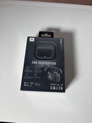 Fones de ouvido sem fio JBL Tour Pro 2 em preto. - Smart Case - True Adaptive Noise Cancelling - Perfect Cails - Wireless Charging - 40 horas de bateria - 10 min de carga = 30 horas de uso