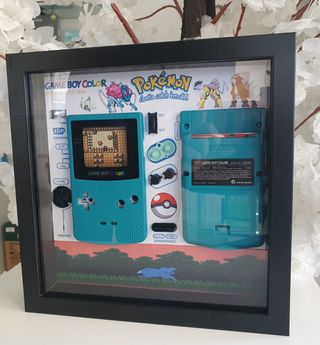 Quadro gameboy versao pokemon, quadro decorativo, com a carcaça ds gameboy color pokemon, pode ir com aro branco ou preto, é só escolher.