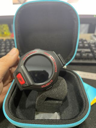Smartwatch Alcatel Go Watch SM03 com design moderno. - Caixa em preto com detalhes em azul. - Pulseira em preto. - Ecrã redondo. - Botão lateral vermelho com a inscrição Go. ATENÇÃO - Pouco usado, está tudo ok, tirando a parte que não consigo saber qual é APP para ele funcionar no telemóvel... Assim sendo já explico aqui não sei como o usar no telemóvel...