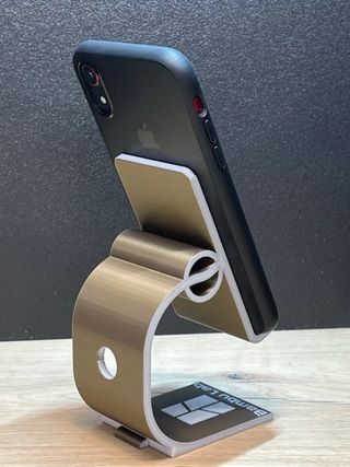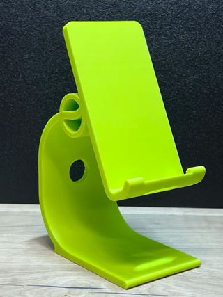 Soporte para teléfono móvil con un diseño moderno y estilizado. Ideal para colocar tu dispositivo en cualquier superficie. - Fabricado en material resistente. - Diseño curvo y segmentado. Impressão 3d Cor blanco Negro Azul Vermelho