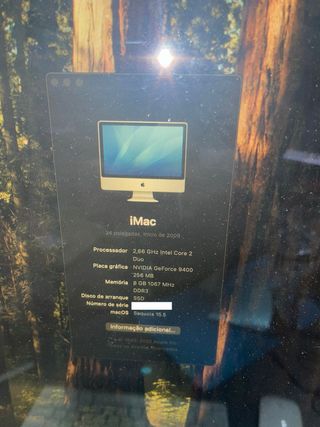 Computador iMac de 24 polegadas, modelo de 2009, com instalação do OpenCore. Tem instalado o macOS Sequoia 15.5 - Através de Open Core Com SSD 240GB 8GB RAM Teclado BT Magic Mouse BT Inslcui o Office 2021 MAC Photoshop 2020 Ainda é usado no dia a dia... - Cor: Prata e branco. - Tela de 24 polegadas - Os Brancos já estão meio bege... mas tudo a funcionar normalmente... - Ideal para quem busca um sistema customizado.