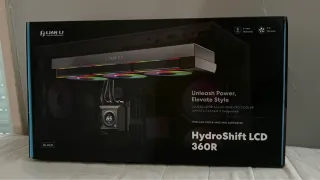 Sistema de refrigeração líquida Lian Li HydroShift LCD 360R. - Cooler de CPU All-in-One. - Suporta Intel LGA 1700 e AMD. - Inclui 3 ventoinhas de 120 mm. - Cor: Preto.