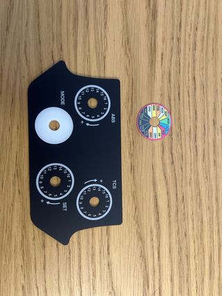 Autocolante alternativo para volante Pokorny GTEv3. - Design inspirado em discos de ajuste. - Inclui marcações para ABS, TCS e MODE. - Detalhes coloridos com legendas como MAP, BOX, RON, FRB, RRB, ERS, FN1, FN2, FN3, FFB, DIF, DSH, DOU, TC2, TC3.