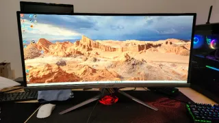 Monitor curvo de alta performance para gaming. - Tela de 34 polegadas. - Resolução UWQHD (3440 x 1440). - Taxa de atualização de 100Hz. - Tecnologia G-Sync. Entrego em caixa original e junto 1cabo super VGA, 1 cabo HDMI e 1 cabo displayport