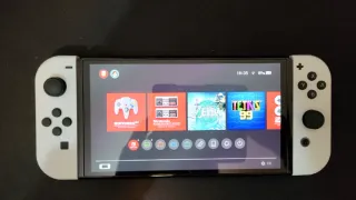Consola Nintendo Switch OLED na cor branca. - Ecrã OLED vibrante. - Base e Joy-Cons brancos. Consola esta como nova sem qualquer marca e entrego com todos os acessórios originais e ainda uma bolsa original e carregador de comandos para poder recarregar mesmo enquanto tem a Consola na dock ligada na TV.