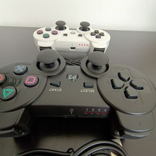 Dois controladores compatíveis com PlayStation 3 e PC novos Double shock, wireless na ps3, no PC só com cabo. Bateria 400 mAh Oferta de cabos USB. Design ergonômico e confortável. Posso vender em separado. Qualquer dúvida disponha