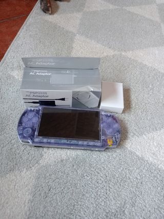 Vendo PlayStation Portable 2000 numa tonalidade lilás translúcida. Inclui carregador AC. - Console em bom estado. - Carregador AC incluído na caixa original.