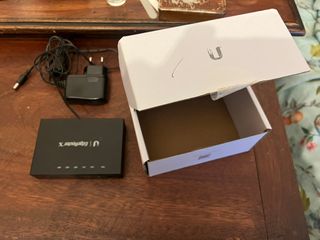 Roteador Ubiquiti EdgeRouter X. - Modelo: ER-X - Portas: 5x Gigabit Ethernet • (5) Gigabit RJ45 ports • Passive PoE passthrough option* • Power via 24V passive PoE or power adapter • Ports configurable for line-rate, Layer-2 switching • 260 kpps for 64‐byte packets • 1 Gbps for 1518-byte packets