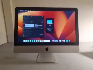 iMac 14,1 A1A418 Late 2013 de 21.5 polegadas Estado impecável, como se pode ver nas fotos. Manutenção recente: completamente limpo pelo interior e pasta térmica nova. Upgrade de memória para 16GB e adição de disco SSD NVME de 256GB (muito rápido). Com MacOS 13 Ventura (pronto a usar). - CPU: Intel Core i5 2.7GHz quad-core (i5-4570R) - RAM: 16GB DDR3 PC-12800 a 1600Mhz - Armazenamento: 256GB de SSD NVME (upgrade recente) + 1TB HDD 5400rpm (disco original) - GPU: Intel Iris Pro 5200