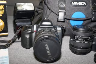 Minolta Dynax 500si Super+2x Lente Sigma+2x Flash