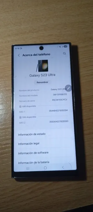 Smartphone Samsung Galaxy S23 Ultra com 512GB de armazenamento. - Modelo: SM-S918B/DS - IMEI 1: 354484221935594 - IMEI 2: 355064221935593