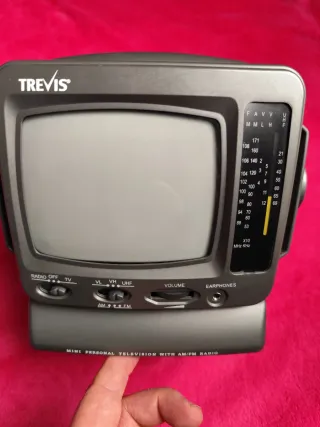 Mini televisão analógica vintage da marca Trevis. Um aparelho compacto e portátil. - Design retrô. - Inclui rádio AM/FM.