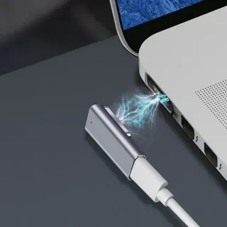 Adaptador de ponta para carregador MagSafe 3. - Conexão USB-C. - Design em alumínio prateado. - Indicador LED verde.