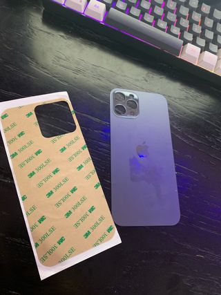 Vidro traseiro de substituição para iPhone 12 Pro Max. Não tem riscos, apenas está sujo.