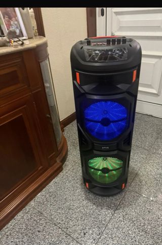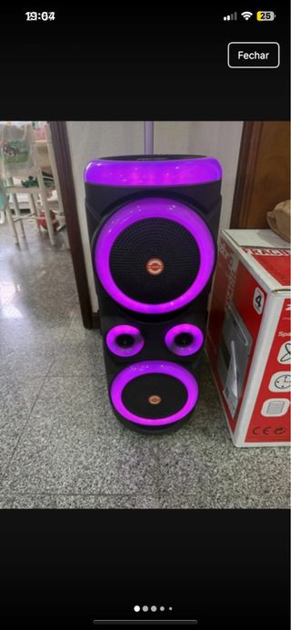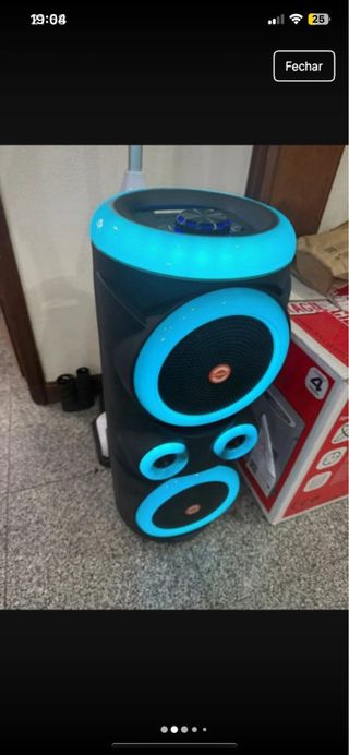Coluna de som Bluetooth nova, na caixa original. - Tamanho do altifalante: 8 polegadas. - Potência: 20W x2. - Inclui microfone e controlo remoto. - Modelo: 7858223.