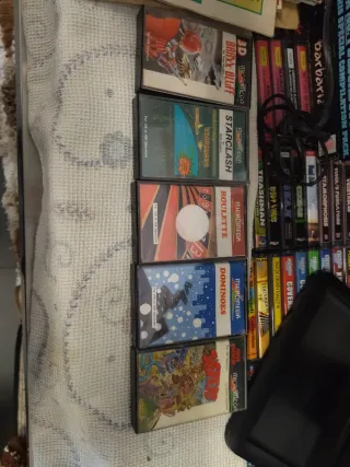 Coleção de jogos para ZX Spectrum. - Títulos variados de ação. - Cassetes com capas originais. SCION ( PRECINTADO)...13€ CURSED CASTLE ( PRECINTADO)..13€....vendido RESTLESS....10€ MANIC MORITZ....10€ CASTAWAY. 9€ THE GUARDIAN II...7€ CHEVY CHASE....7€....vendido POSEIDON....10€....vendido DEFENDERS OF THE EARTH.. 10€ PEOPLE OF SIRIUS ( PRECINTADO)....15€ O RESTO A 6€ CADA. PREÇO DO LOTE....165€