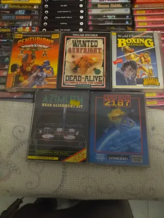 Colección de juegos para Sinclair Spectrum. - Wanted Gunfight....20€ - World Championship Boxing Manager..10€ - Centurions Power Extreme....12€ - Azimuth Head Alignment Kit...10€ - Dogfight 2187...12€ Lote...50€