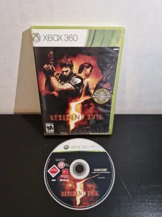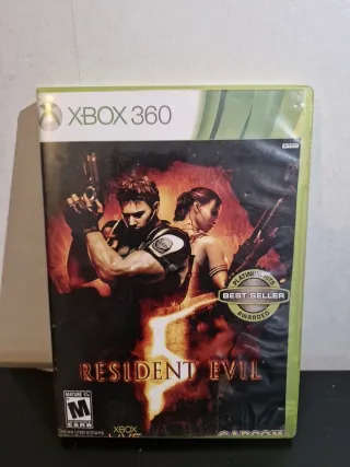 Jogo Resident Evil 5 para Xbox 360, edição Platinum Hits. - Inclui o jogo em formato físico. - Classificação indicativa: Mature 17+. - Selo de Best Seller concedido.