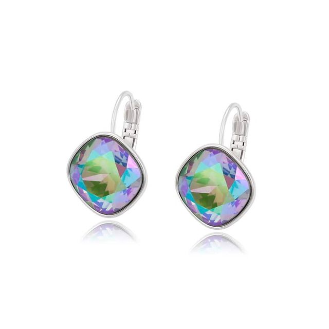 Brincos Luxuosos Banhados em Platina com Cristal Multicolorido