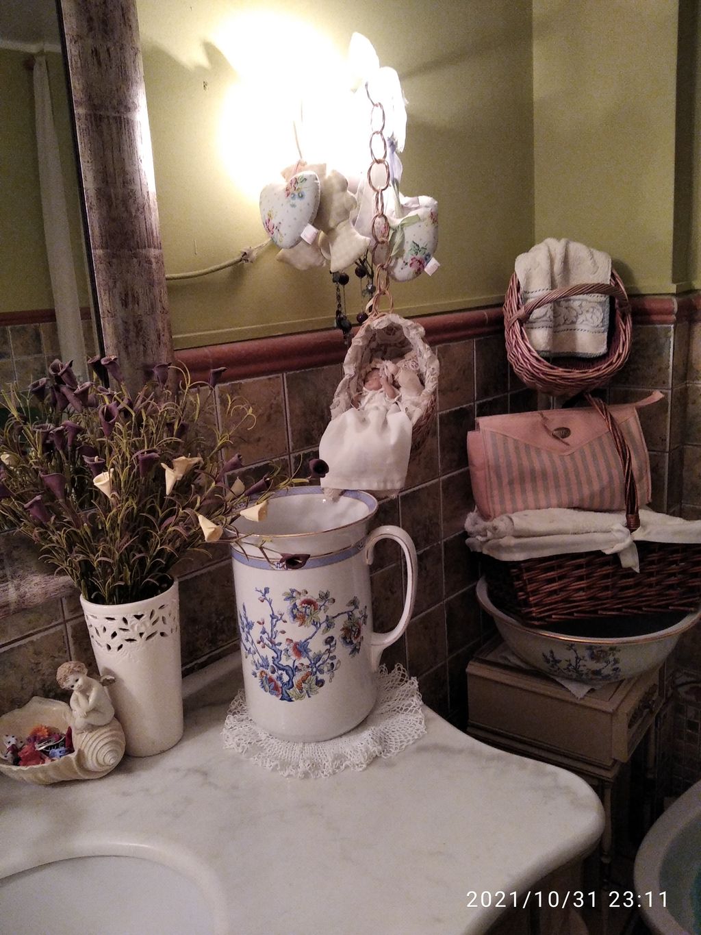 Almofada e fundo de bancada em lençol