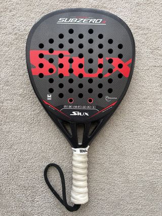 Raquete de padel Siux Subzero3. - Design moderno com detalhes em vermelho. - Punho com grip e grip original - Protetor de aro