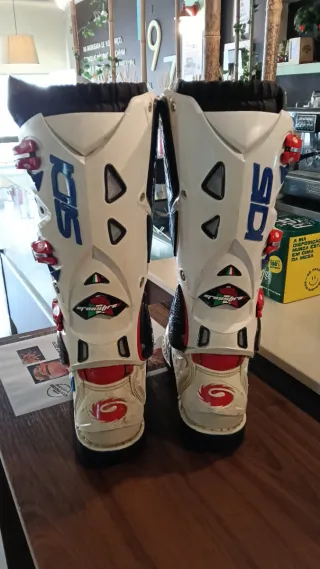 Solas vibrante novas Enduro motocross KTM sherco Husqvarna gásgas TPI Sidi Fox beta alpinestars gaerne rieju airoh aviator leatt Botas de motocross Sidi Crossfire, talla 43. Diseñadas para ofrecer protección y comodidad en la práctica del off-road. - Color blanco, rojo y azul. - Cierre con hebillas ajustables. - Diseño deportivo y robusto.