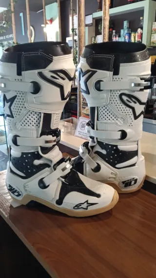 Enduro motocross KTM sherco Husqvarna gásgas TPI Sidi Fox beta alpinestars gaerne rieju airoh aviator leatt Botas de motocross Alpinestars Tech 10. - Talla 42. - Diseño en blanco y negro. - Cierres de hebilla.