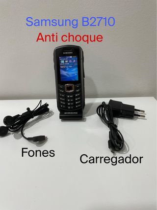 Samsung b2710 anti choque , com carregador original e fones da operadora meo ainda com película no display e na tampa traseira (suporte telemóvel não incluído)