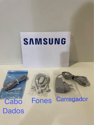 3 acessórios Samsung novos carregador 220v , fones e cabo de dados original