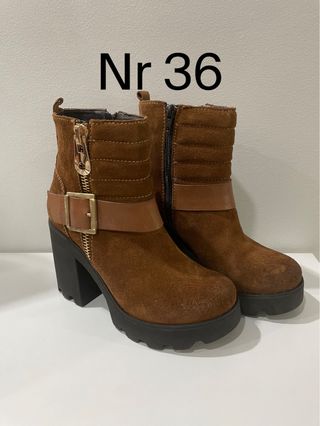 Botas de camurça castanhas com fecho e fivela