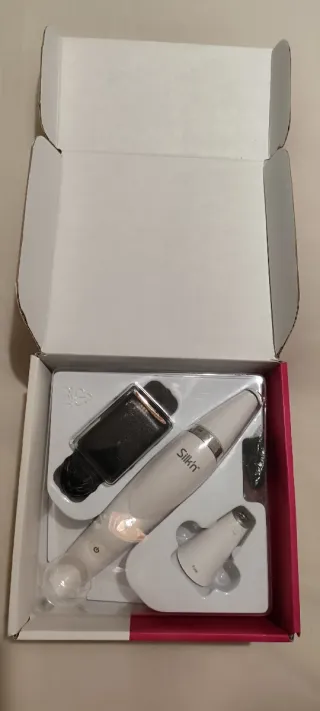 Máquina para limpeza facial da marca Silk'n. - Inclui o aparelho principal. - Acessório de limpeza. - Base de carregamento. Para limpeza dos pontos negros