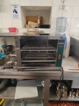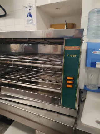 Tostador elétrico em aço inoxidável, ideal para uso profissional. - Design moderno e robusto. - Várias grelhas para tostar. - Painel de controlo com botões.